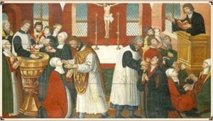 The Holy Church is present wherever believers are gathered about Jesus Christ and His gifts, that is, wherever the Gospel of Jesus Christ is purely preached and taught, and Holy Baptism, Holy Absolution, Holy Communion are administered according to Christ’s mandate and institution, even though unbelievers or hypocrites may also be numbered among those gathered (Mt. 18:20; Acts 2:42; Mt. 13:47-48):